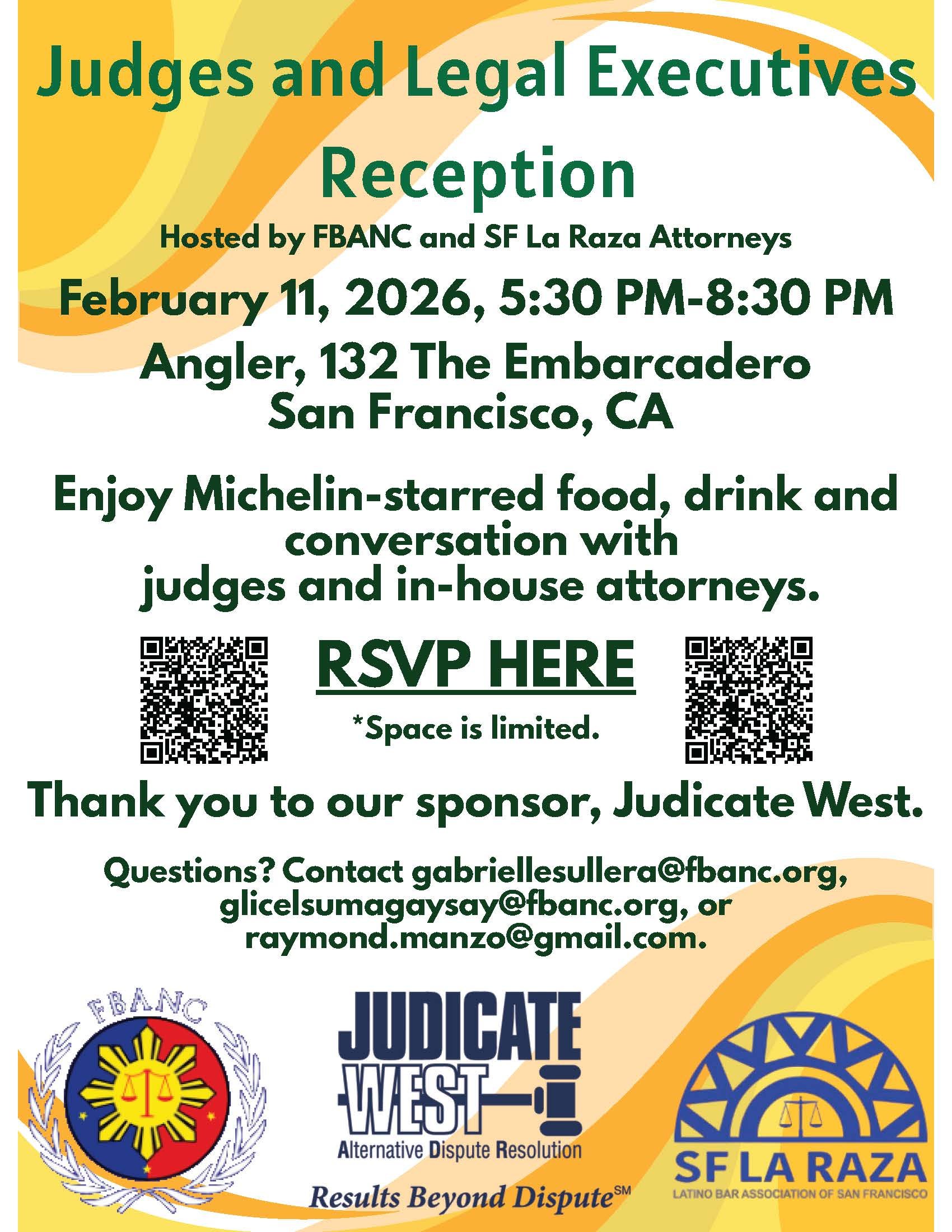 Open to: FBANC members, as well as Fil-Am law students, attorneys, and judges who support FBANC and/or are considering joining FBANC.